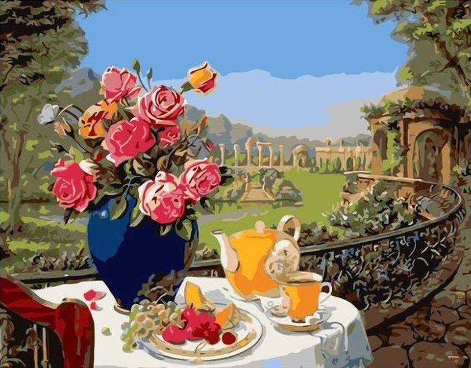 - Модель Чай, фрукты и ваза с цветами