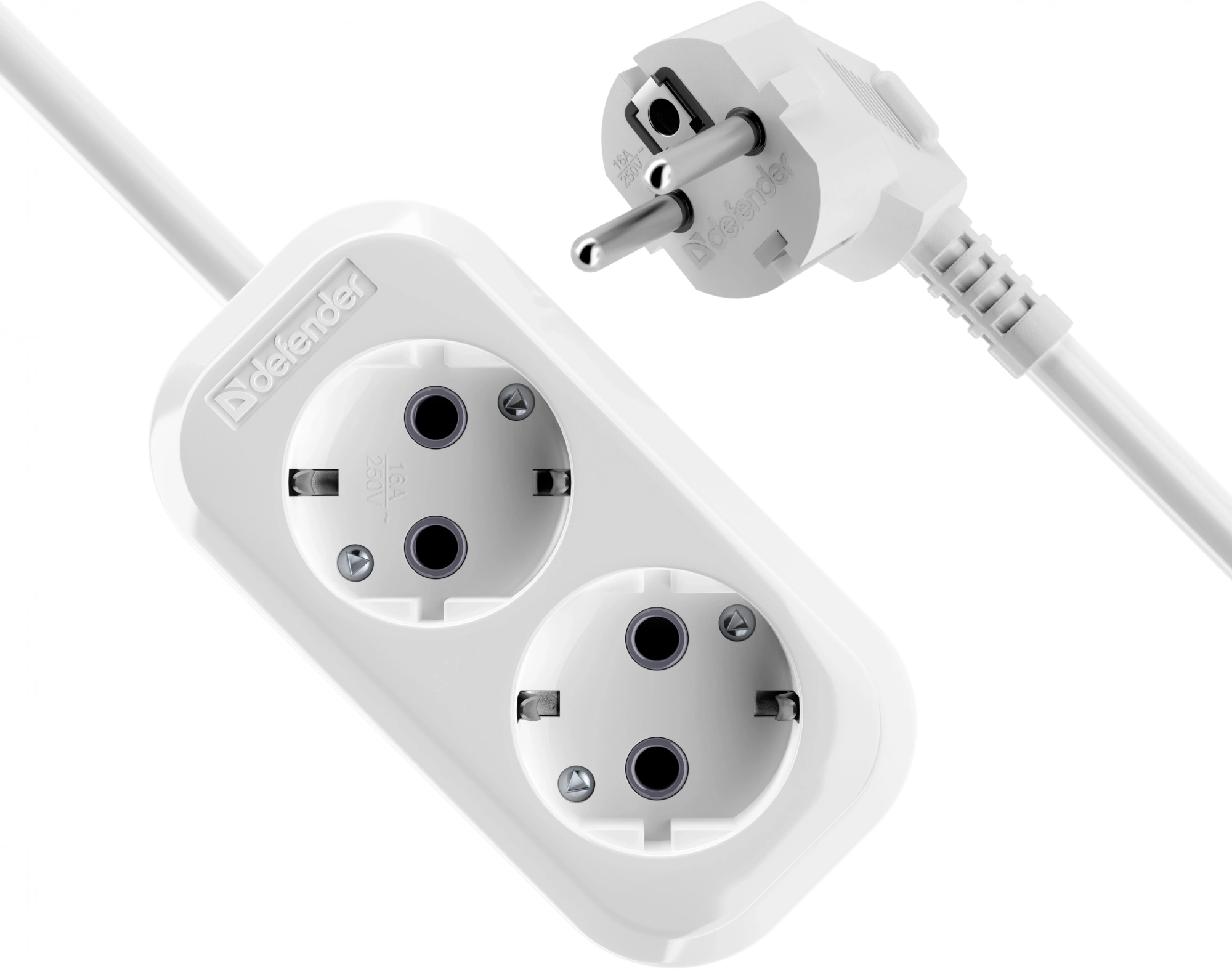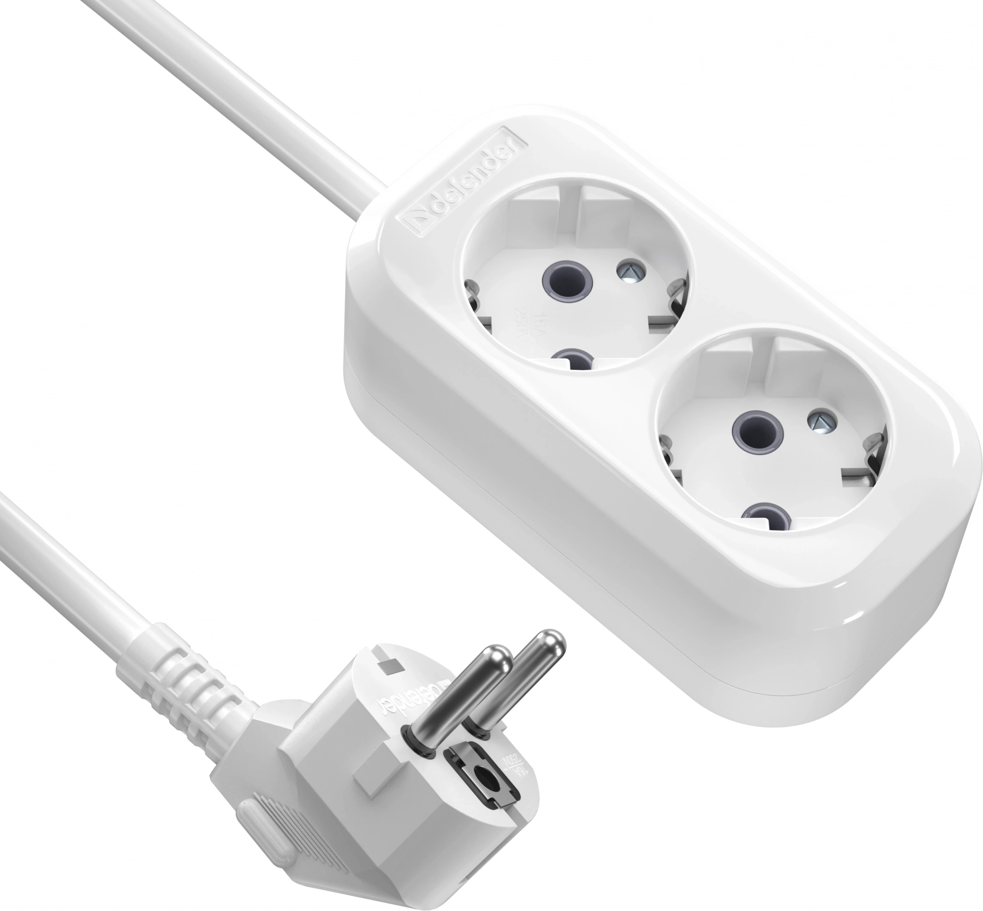 Сетевой удлинитель Defender R320 2м (2 розетки) белый (пакет ПЭ)