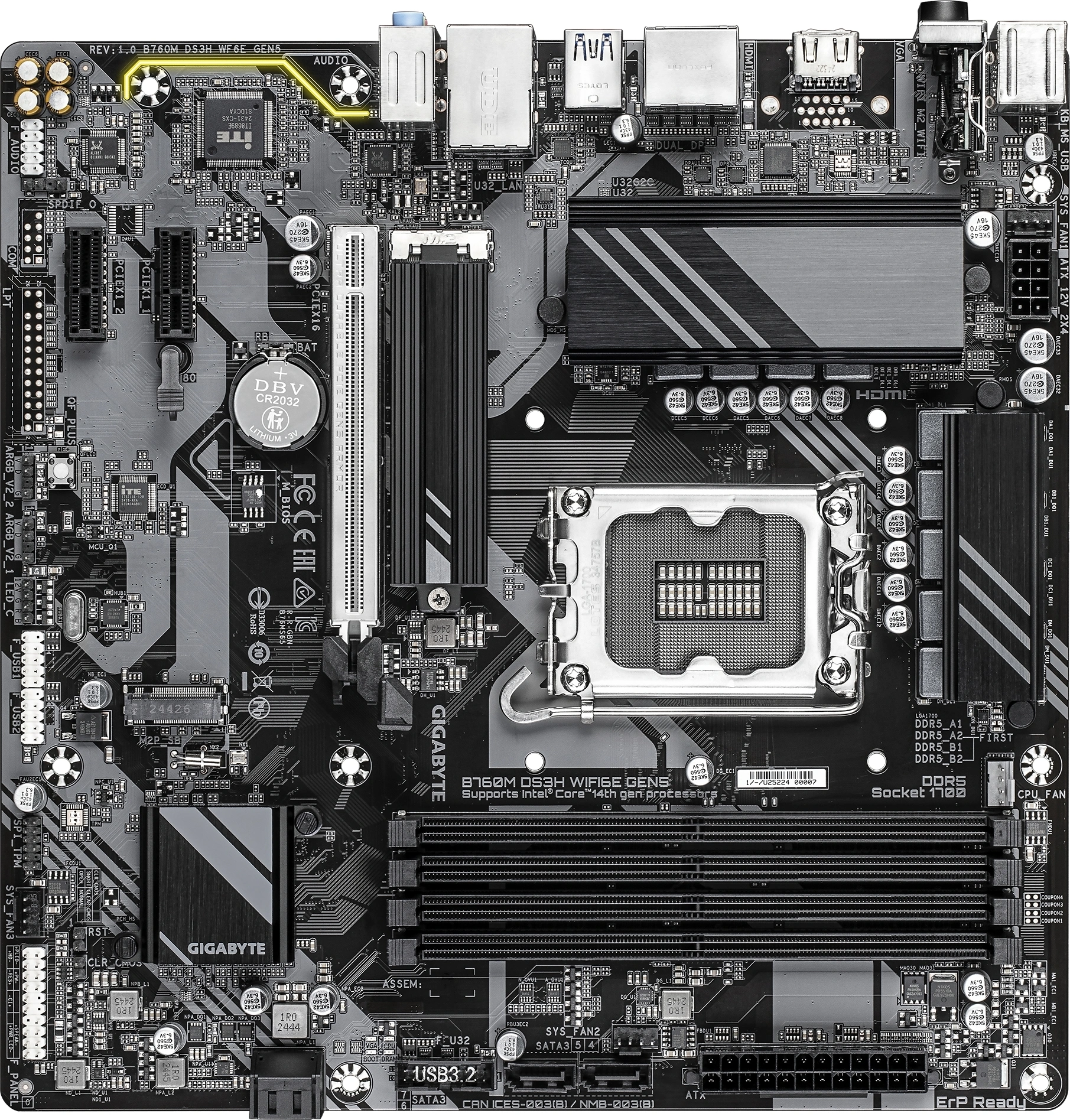 • PartNumber/Артикул Производителя B760M DS3H WF6E GEN5