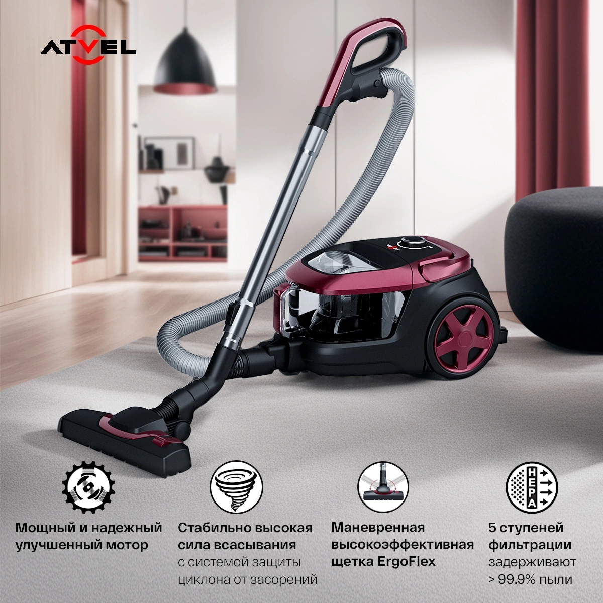 Пылесос Atvel 2000 Series DX2000 2000Вт бордовый/черный (в компл.:1мешок)