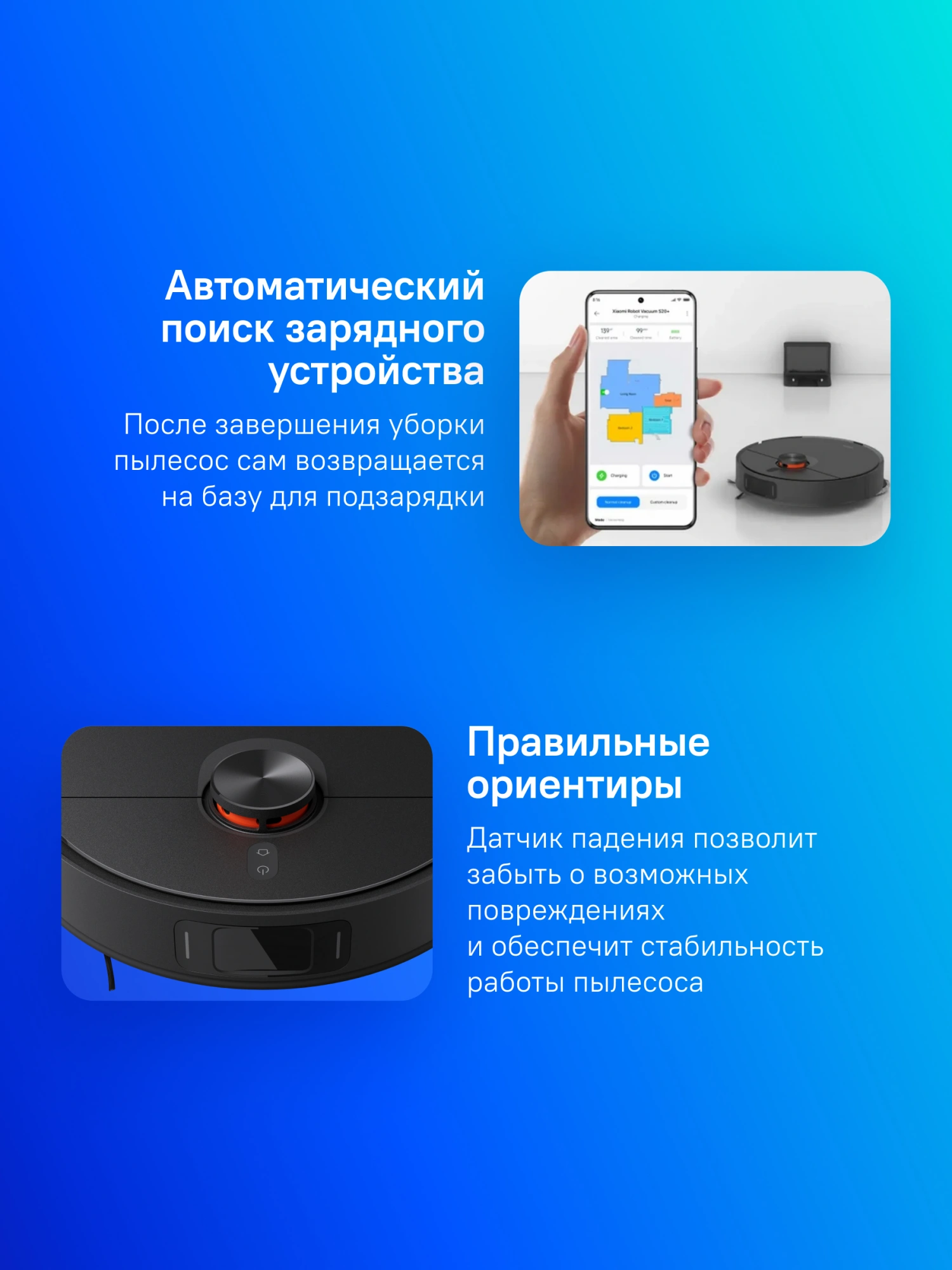 • Функции робота-пылесоса автоматический поиск зарядного устройства, построение карты помещения, управление со смартфона
