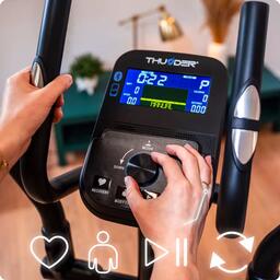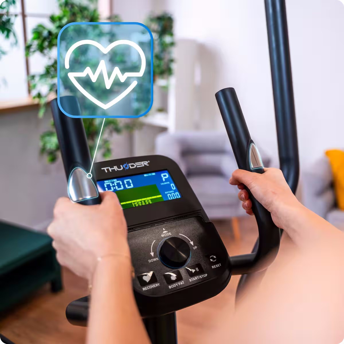 Информированиевремя тренировкидистанцияскоростьобороты в минутуизмерение пульсатест на восстановлениерасход калорийвырабатываемая мощностьжироанализатор