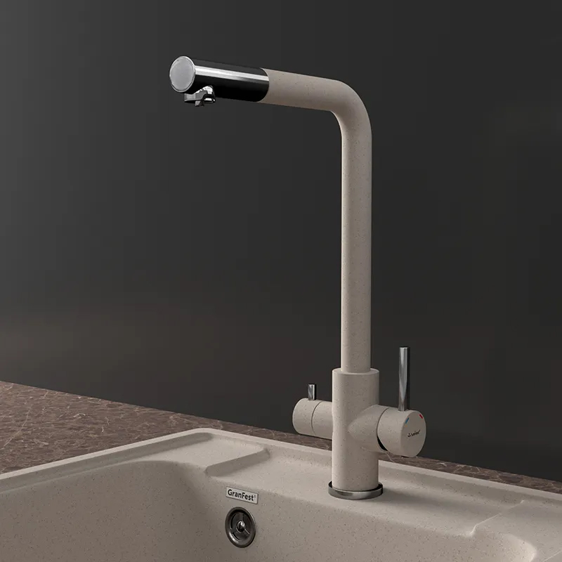 GRANFEST QUARZ Смеситель для кухни, Г-образный, кран под фильтрованную воду, песочный
