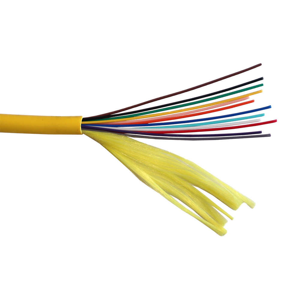Кабель содержит пучок оптических волокон в буферном покрытии, на который наложен слой упрочняющих нитей (арамидные (LAN-OFC-DIxx-yy-HF) / полиэстеровые (LAN-OFC-DIxx-yy-LS)). Оболочка кабеля изготавливается из полимерной композиции, не распространяющей горение, не содержащей галогенов с низким дымовыделением.