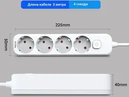 Сетевой фильтр Deli ET435 3м (4 розетки) белый (пакет ПЭ)