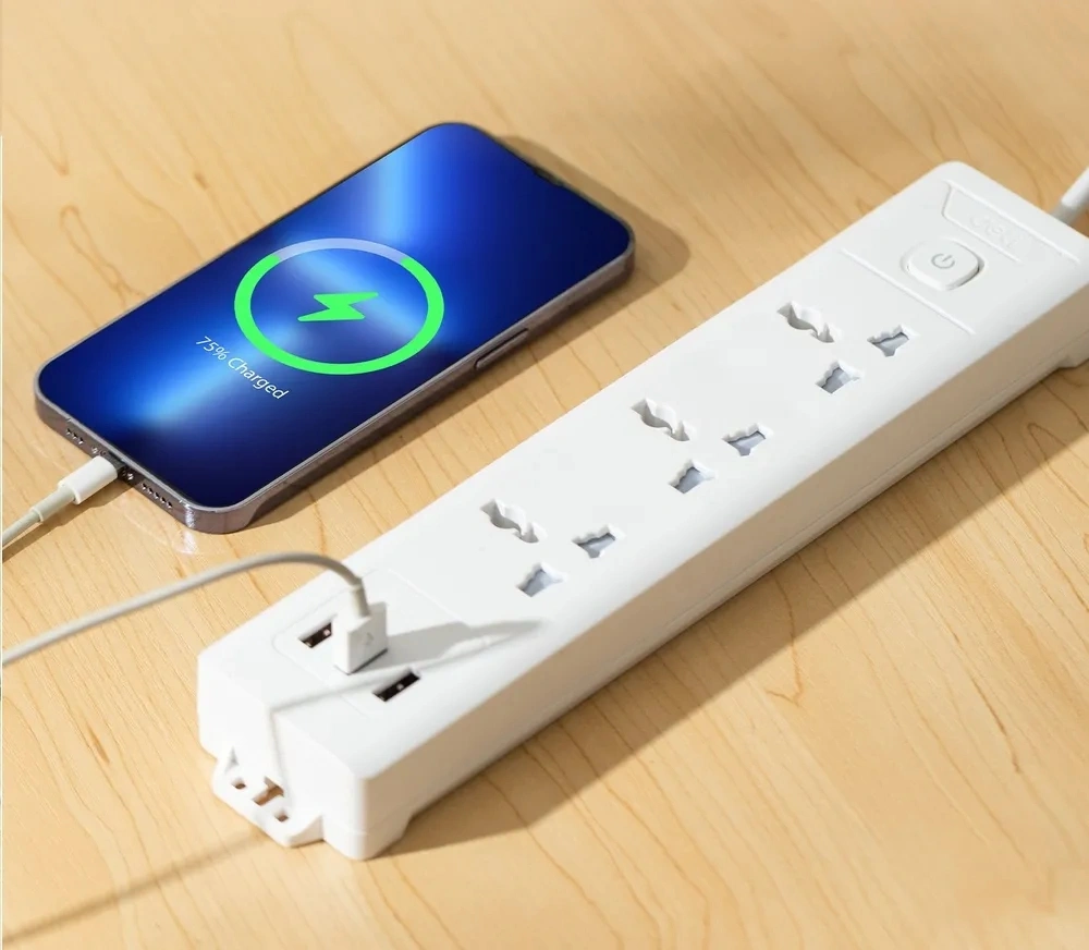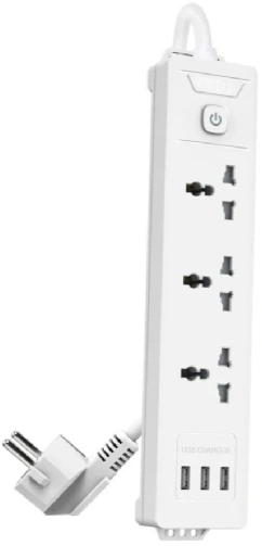 Сетевой фильтр Deli ET408 2м (3 розетки) белый (пакет ПЭ)