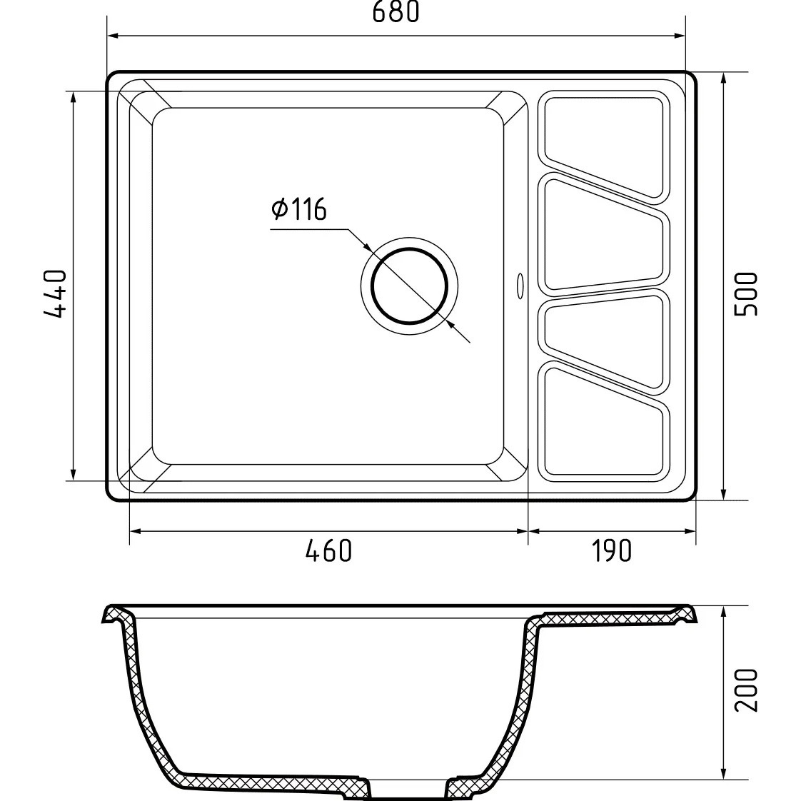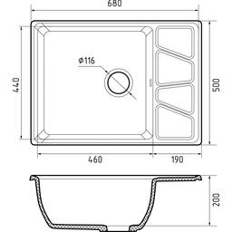 V-680L cashmere 1-чаша+крыло 680*500 мм, монтаж: врезной, материал: мрамор, цвет: кашемир