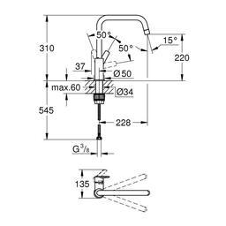 • Висота змішувача 310 мм
