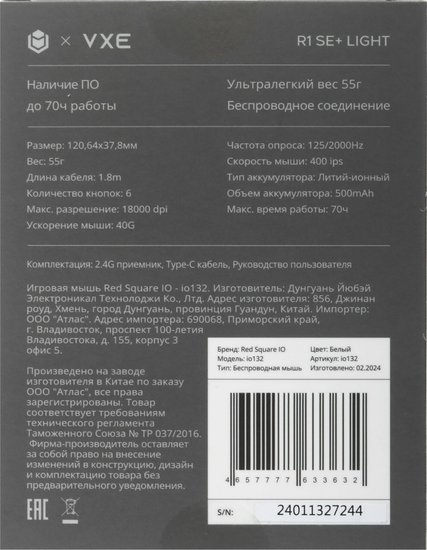 ✅ Мышь Red Square IO x VXE R1 SE+ сочетает в себе современный дизайн и многофункциональность, что делает ее отличным выбором как для домашнего, так и для офисного использования. Корпус выполнен в черном цвете с выразительными голубыми элементами, а гладкая поверхность придает устройству строгий и стильный внешний вид.✅ Данная модель может работать как по беспроводному Bluetooth-интерфейсу, так и через проводное подключение по USB Type-A, что обеспечивает гибкость использования и универсальность подключения к различным устройствам. Мышь оснащена оптическим сенсором с максимальным разрешением 18000 dpi, позволяя точно и быстро реагировать на движения пользователя.✅ Мышь имеет шесть кнопок, включая стандартные и дополнительные для быстрого переключения разрешения и навигации вперед/назад. ✅ Благодаря встроенному аккумулятору мышь может работать без проводов, а при необходимости ее можно подключить к компьютеру для зарядки и полноценного использования. Классическая форма корпуса обеспечивает комфорт даже при длительной работе, а строгий дизайн подойдет для любого рабочего пространства.✅ Мышь Red Square IO x VXE R1 SE+ сочетает в себе современный дизайн и многофункциональность, что делает ее отличным выбором как для домашнего, так и для офисного использования. Корпус выполнен в черном цвете с выразительными голубыми элементами, а гладкая поверхность придает устройству строгий и стильный внешний вид.✅ Данная модель может работать как по беспроводному Bluetooth-интерфейсу, так и через проводное подключение по USB Type-A, что обеспечивает гибкость использования и универсальность подключения к различным устройствам. Мышь оснащена оптическим сенсором с максимальным разрешением 18000 dpi, позволяя точно и быстро реагировать на движения пользователя.✅ Мышь имеет шесть кнопок, включая стандартные и дополнительные для быстрого переключения разрешения и навигации вперед/назад. ✅ Благодаря встроенному аккумулятору мышь может работать без проводов, а при необходимости ее можно подключить к компьютеру для зарядки и полноценного использования. Классическая форма корпуса обеспечивает комфорт даже при длительной работе, а строгий дизайн подойдет для любого рабочего пространства.
