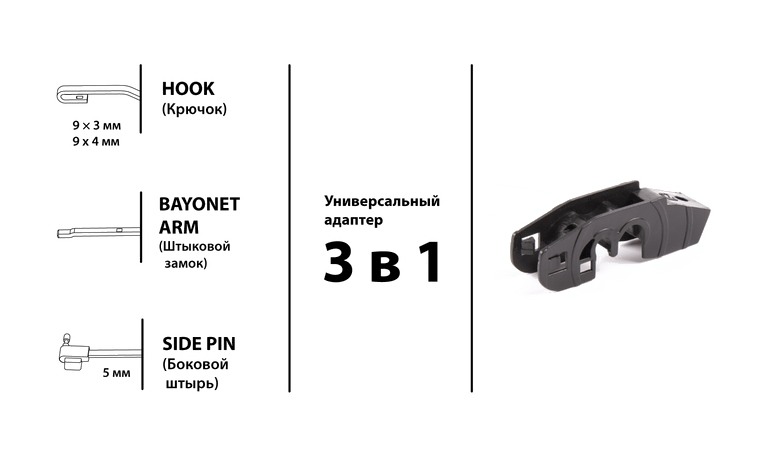 - Вид крепления Bayonet (штыковой замок), Hook (крючок), Side Pin (боковой штырь)