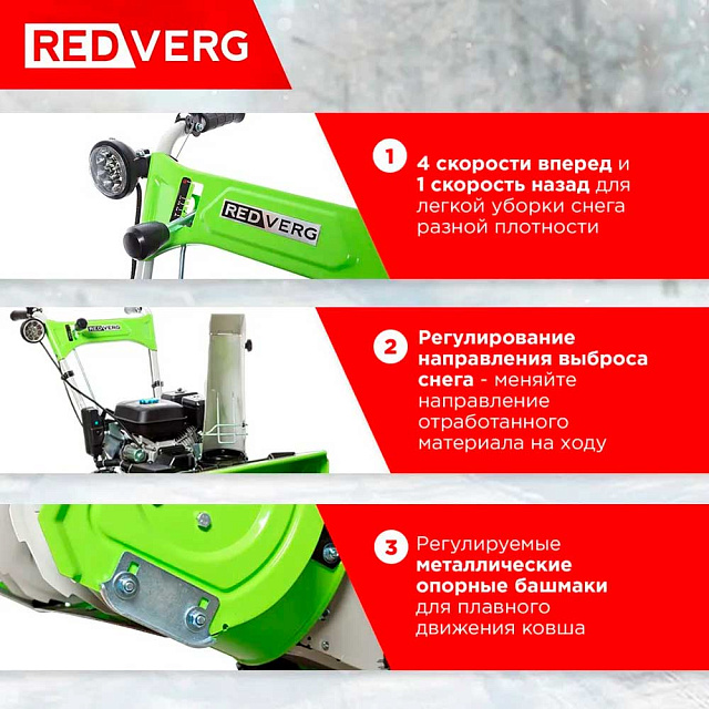 Широкий список плюсов снегоуборочной машины REDVERG RD-SB56/7EB