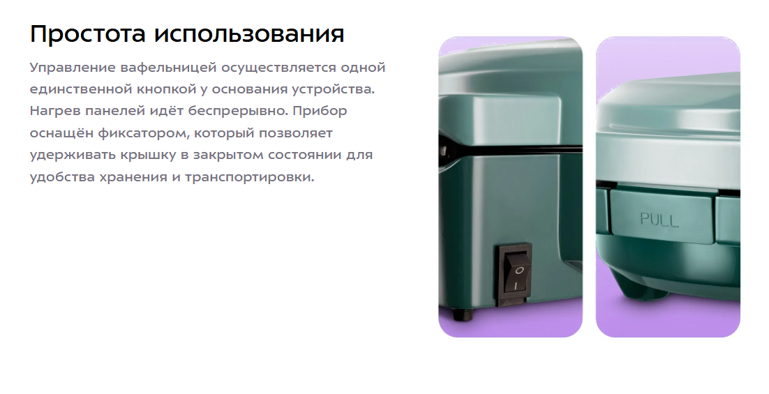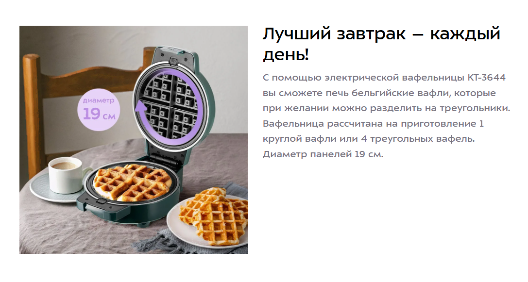 • Вместимость бельгийские вафли 1 шт. (круглая), бельгийские вафли 4 шт. (треугольные)