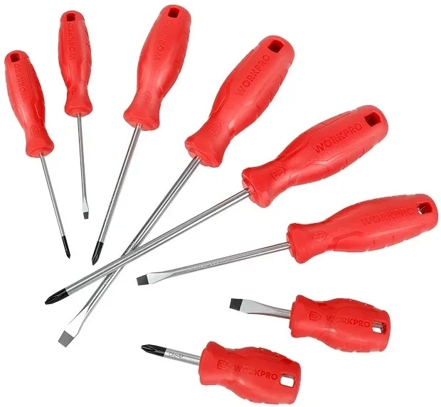 ОписаниеНабор отверток - идеальный комплект для любых ремонтных и монтажных работ. Стержни отверток изготовлены из прочной CR-V стали, что обеспечивает долговечность и надежность. Удобные рукоятки разработаны для комфортного хвата, позволяя работать без усталости.