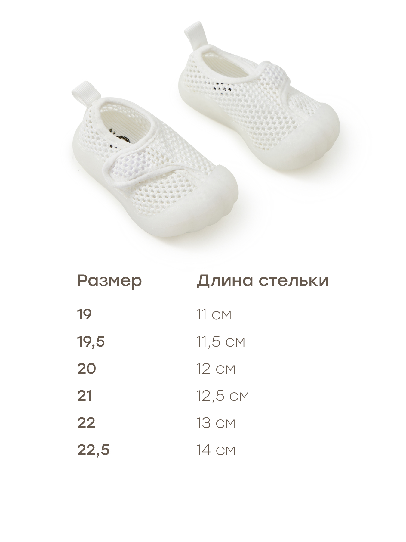 Летние кроссовки – удобная обувь для самой жаркой погоды. Благодаря полностью сетчатому материалу верха не дают ножкам вспотеть. Невесомая подошва из ПВХ заходит на носок, чтобы защитить пальчики крохи. Анатомически правильная конструкция: пятка слегка приподнята по отношению к носку, жёсткий задник, круглый носок. Благодаря этому стопы малыша развиваются правильно. Простая и удобная застёжка – липучка – позволит быстрее собирать малыша.