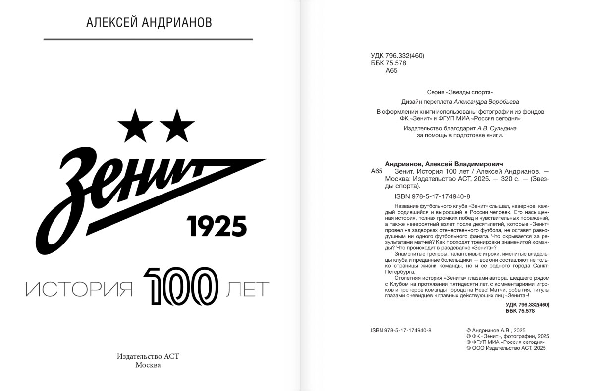 Книга АСТ Зенит. История 100 лет, твердая обложка (Андрианов Алексей)
