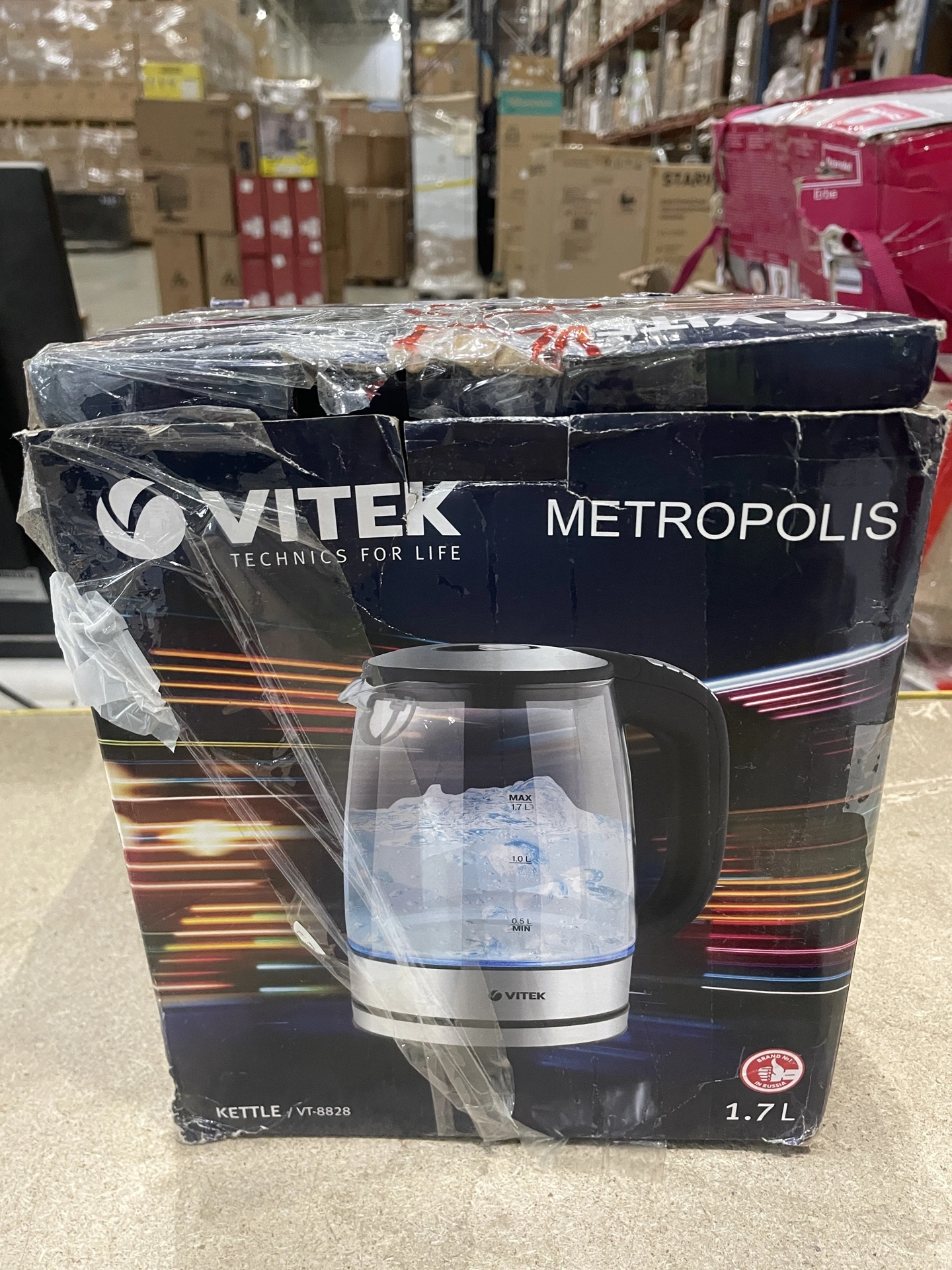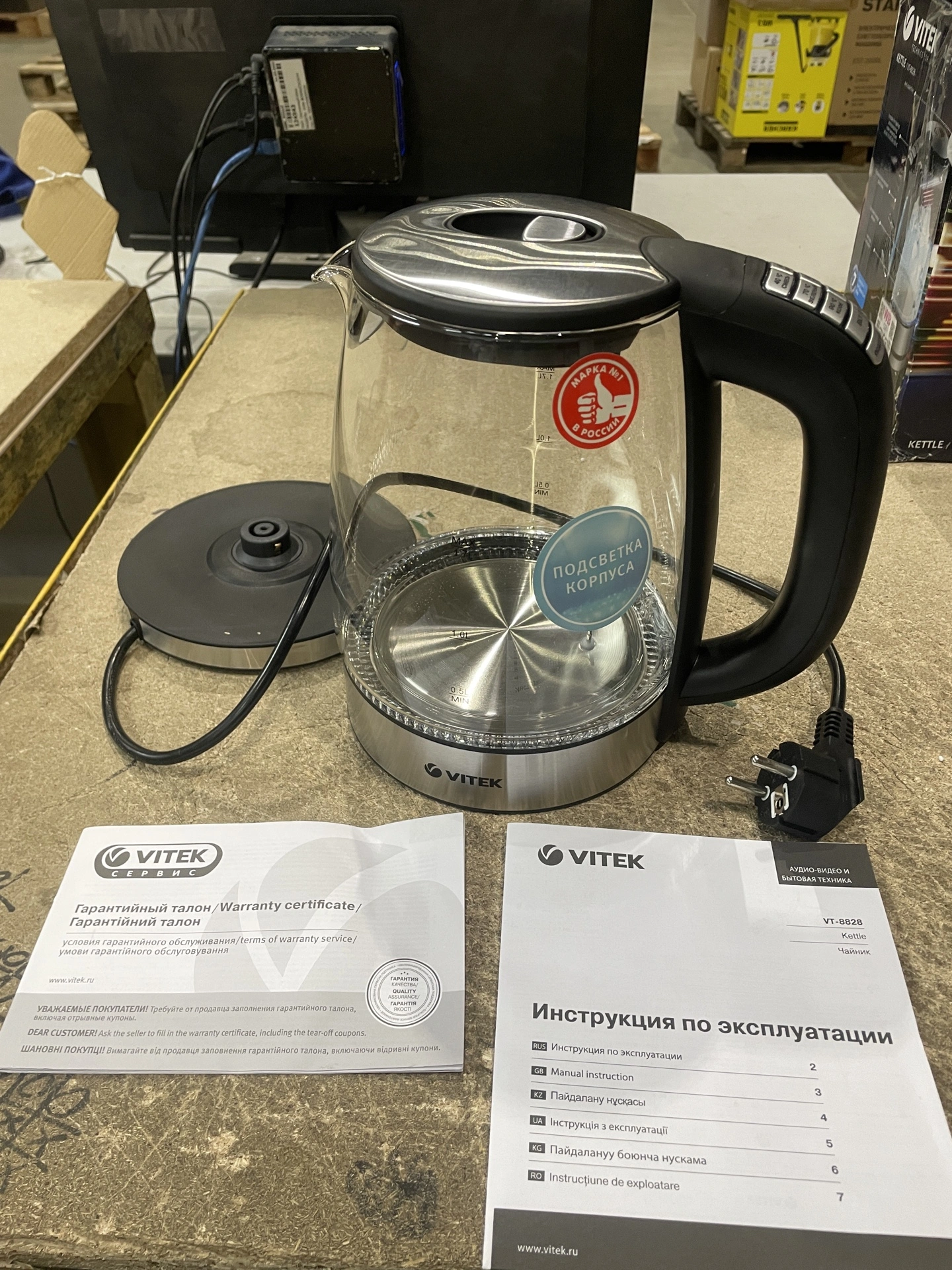 Чайник Vitek VT-8828 1.7л. 2200Вт серебристый (стекло/металл) (уценка)