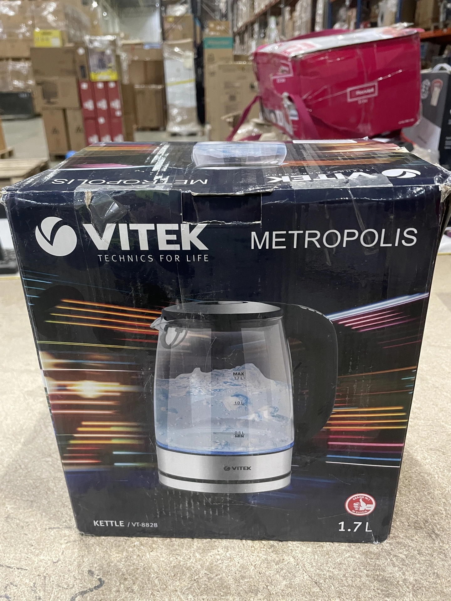 Чайник Vitek VT-8828 1.7л. 2200Вт серебристый (стекло/металл) (уценка)