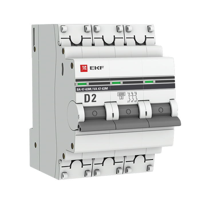Автоматические выключатели ВА 47-63М с электромагнитным расцепителем 6 кА EKF PROxima являются механическими коммутационными аппаратами, производятся в одно-, двух- и трехполюсном исполнениях и соответствуют ГОСТ 12.2.007-75. Особенностью данной серии выключателей является усовершенствованная конструкция. В выключателях имеются пластиковые крышки, закрывающие доступ к винтовому зажиму и служащие для опломбирования выключателей, что исключает несанкционированный доступ к проводникам. Корпус выключателей усилен дополнительными заклепками для устранения эффекта расхождения корпуса. Выключатели оборудованы удобной ручкой управления, обеспечивающей надежное оперирование изделиями. На лицевой панели выключателей имеется цветовой индикатор состояния. Конструкция установочного зажима обеспечивает свободную установку выключателя на DIN-рейку.