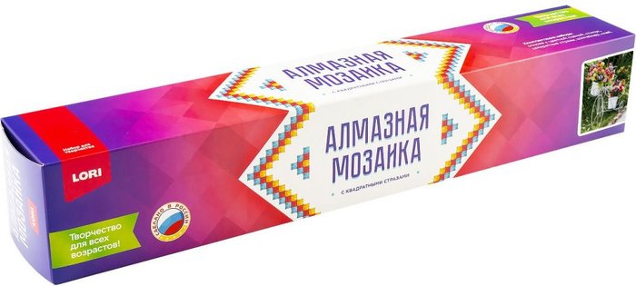 - Комплектация клей (сухой), набор страз, лоток для страз, стилус, основа для картины, схема (цветная)