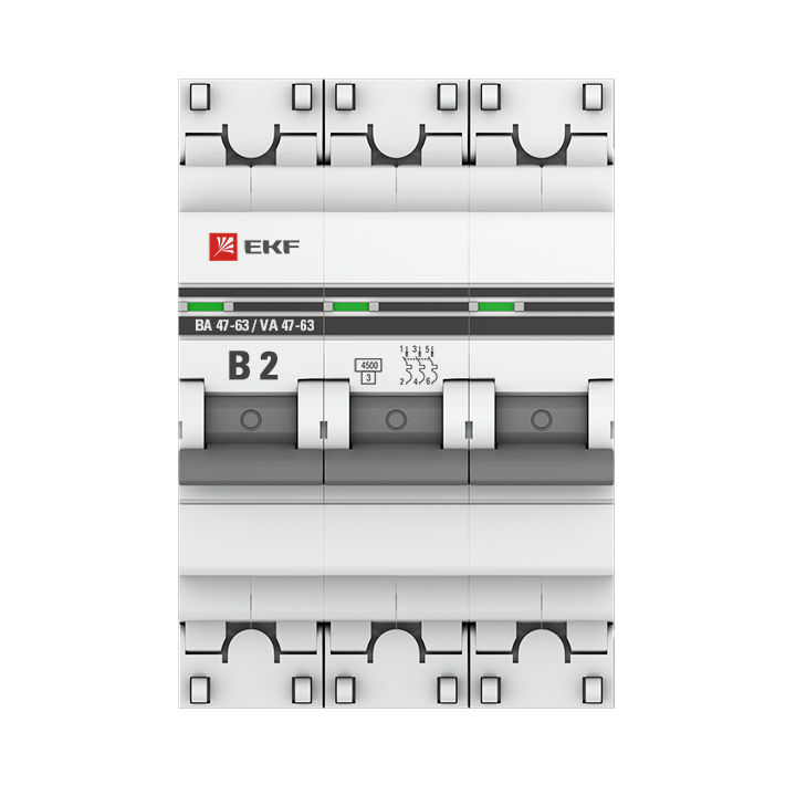 Автоматические выключатели ВА 47-63 4,5 кА EKF PROxima являются механическими коммутационными аппаратами, производятся в одно-, двух-, трех- и четырехполюсном исполнениях и соответствуют ГОСТ Р50345-2010. Особенностью данной серии выключателей является усовершенствованная конструкция. В выключателях имеются пластиковые крышки, закрывающие доступ к винтовому зажиму и служащие для опломбирования выключателей, что исключает несанкционированный доступ к проводникам. Корпус выключателей усилен дополнительными заклепками для устранения эффекта расхождения корпуса. Выключатели оборудованы удобной ручкой управления, обеспечивающей надежное оперирование изделиями. На лицевой панели выключателей имеется цветовой индикатор состояния. Конструкция установочного зажима обеспечивает свободную установку выключателя на DIN-рейку.
