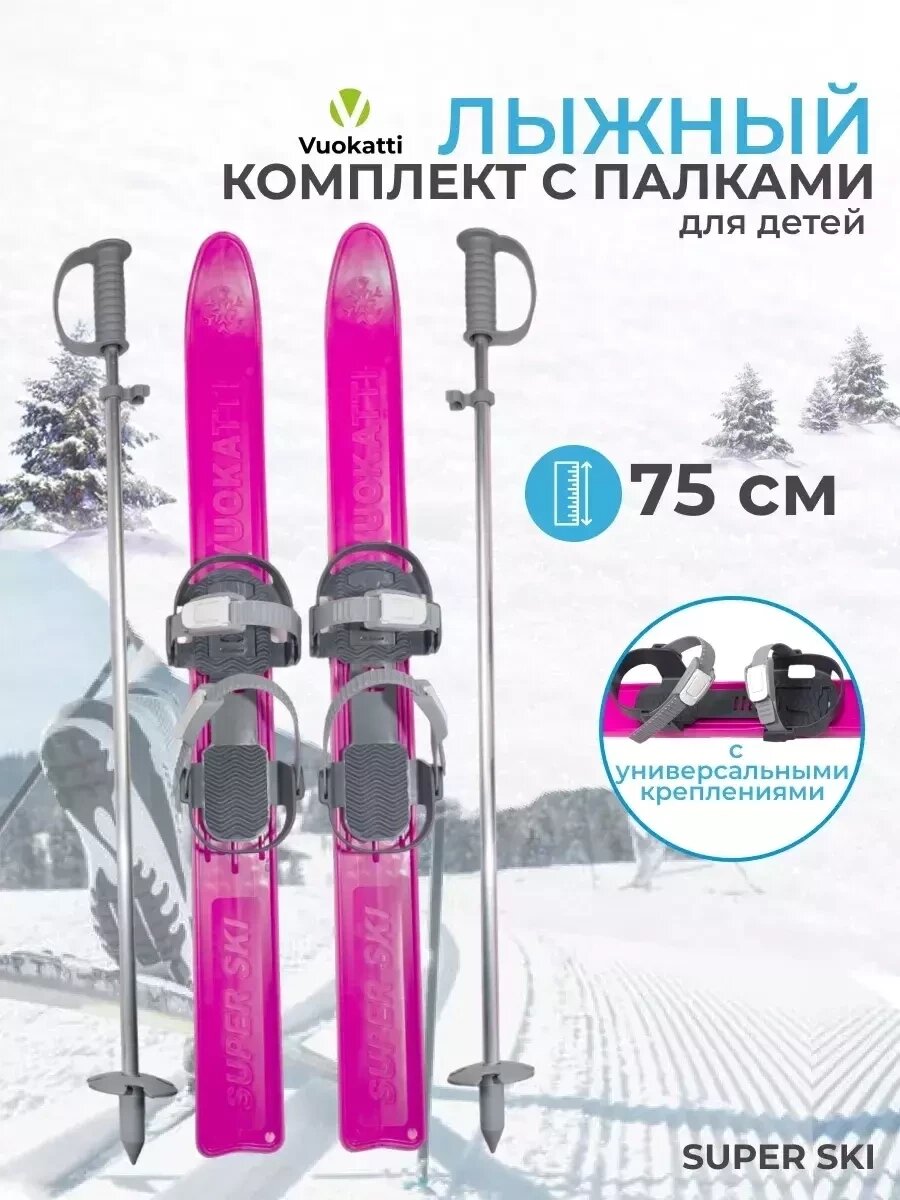 Детские лыжи с палками 75 см и креплениями / Лыжный комплект VUOKATTI