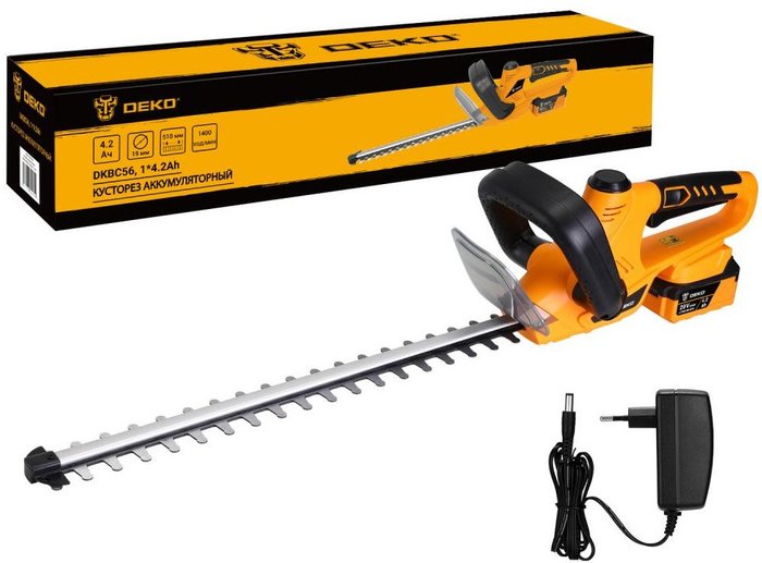 • Комплектация - Кусторез - 1 шт.- Чехол для лезвия - 1 шт.- Аккумулятор 4,2 Ач - 1 шт.- Зарядное устройство - 1 шт.- Руководство по эксплуатации- Коробка