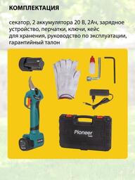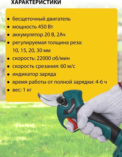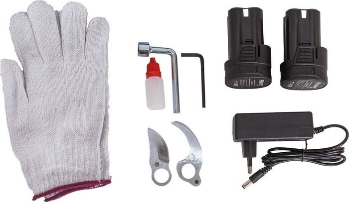• Комплектация - секатор, - батарейный блок, - быстрое зарядное устройство 1000mA, - ключи, - руководство по эксплуатации, - гарантийный талон.