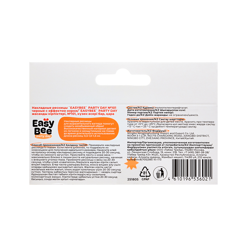 Накладные ресницы `EASYBEE` PARTY DAY EYELASHES FAUX MINK №101 черные с эффектом норки