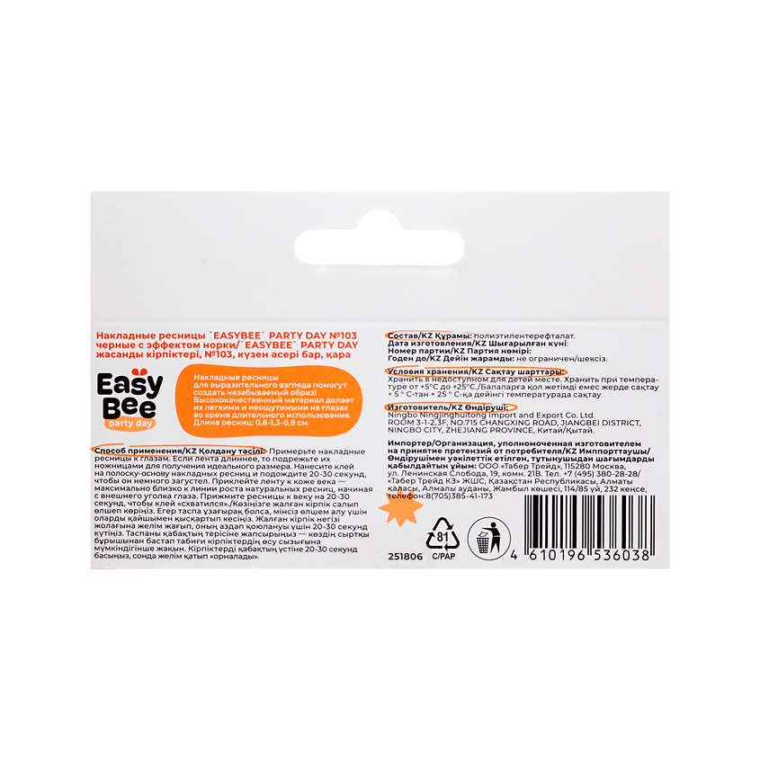 Накладные ресницы `EASYBEE` PARTY DAY EYELASHES FAUX MINK №103 черные с эффектом норки