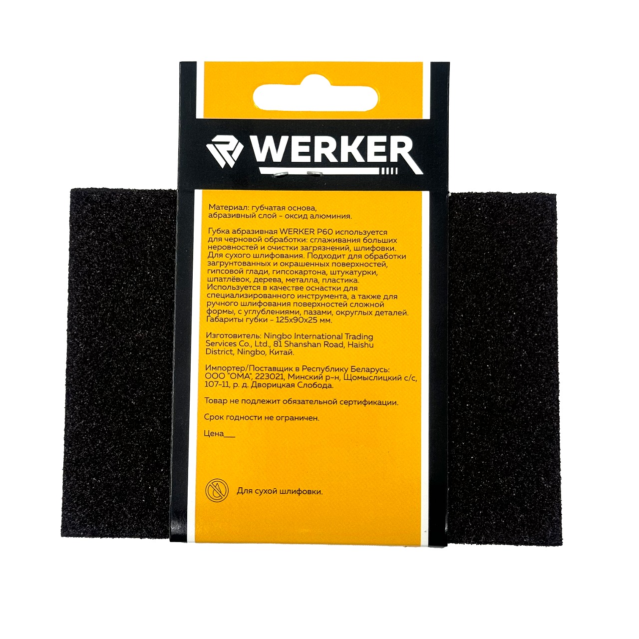 Губка абразивная WERKER 125х90х25 P60 (скошенный край)