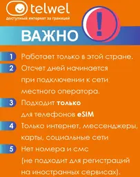 Карта eSIM Telwel Travel пакет Азербайджан 1Гб 30 дней