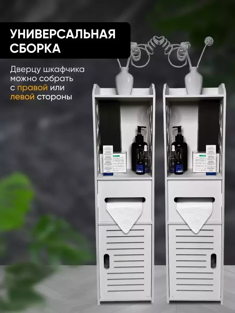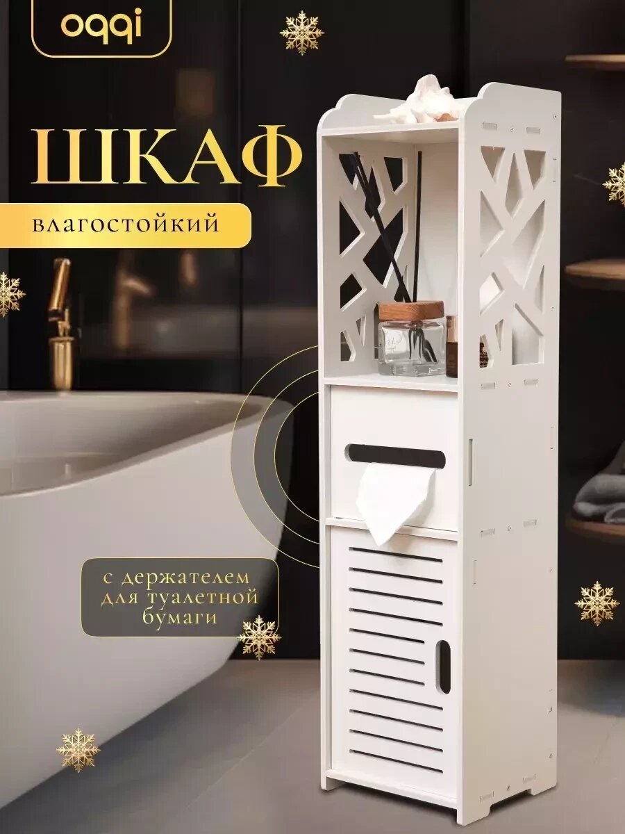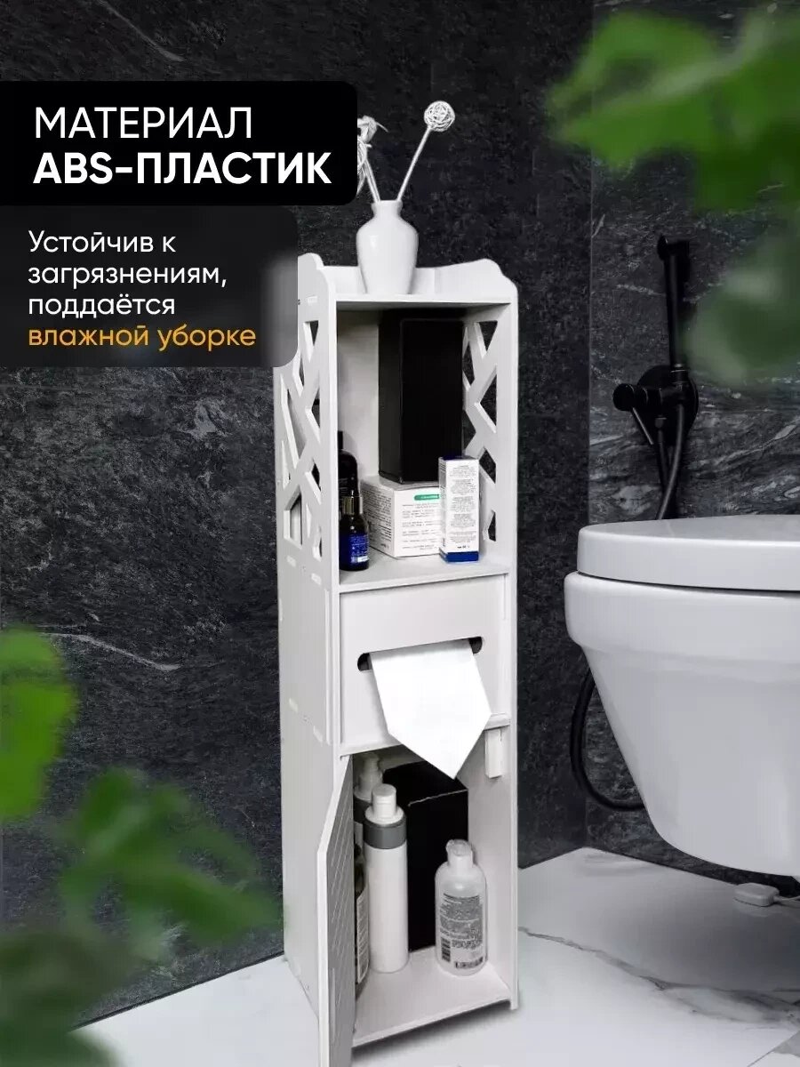 Шкаф пенал в ванную напольный OQQI / держатель для туалетной бумаги (с полкой)