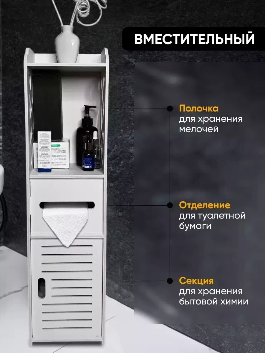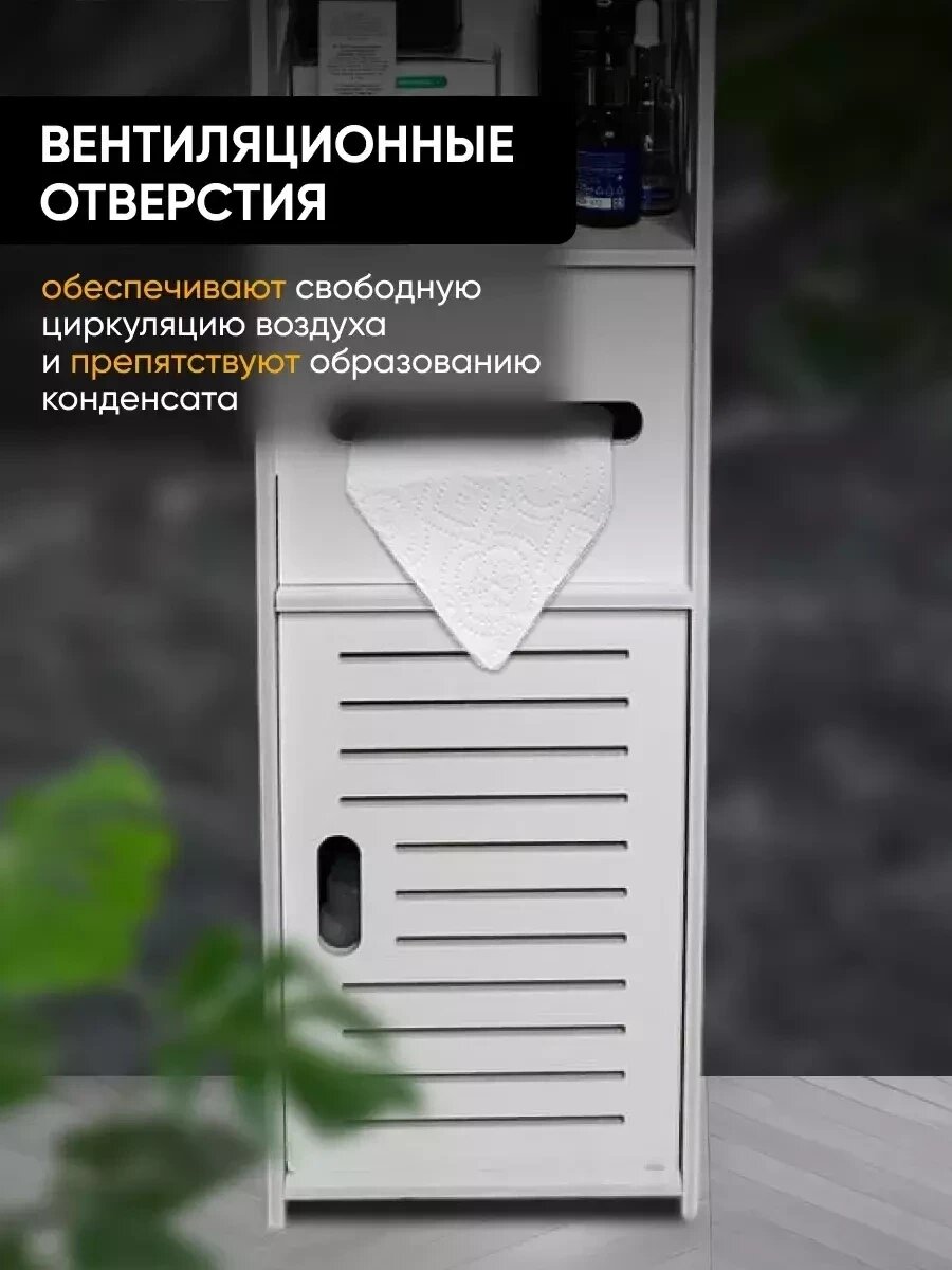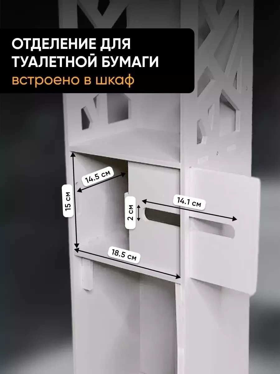 Шкаф пенал в ванную напольный OQQI / держатель для туалетной бумаги (с полкой)