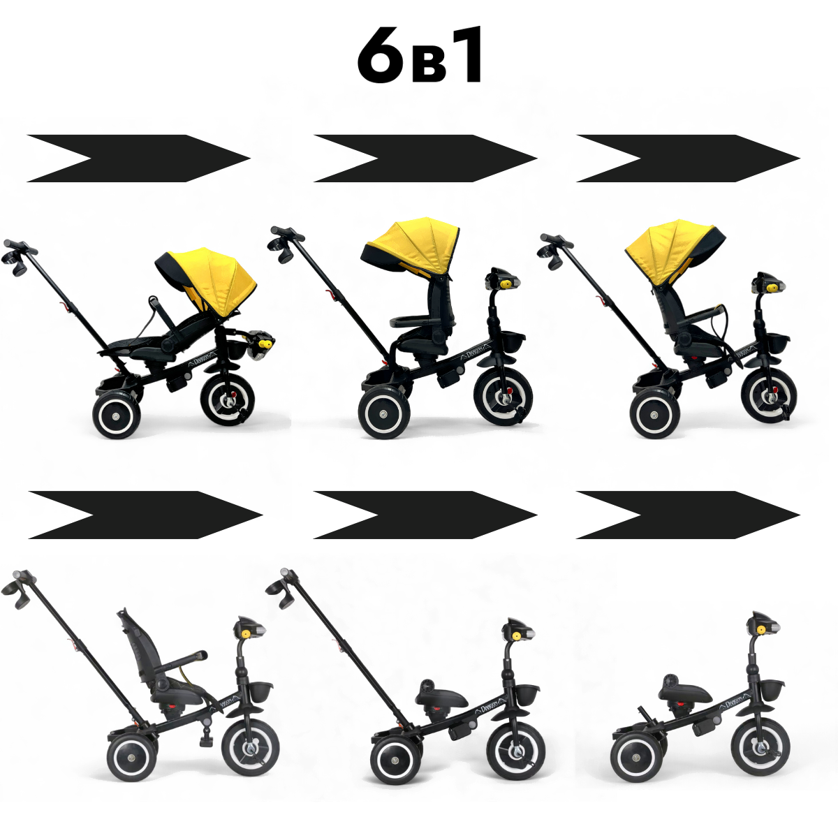Трехколесный велосипед с ручкой Bubago Dragon / BG 161-1 (черный/желтый)