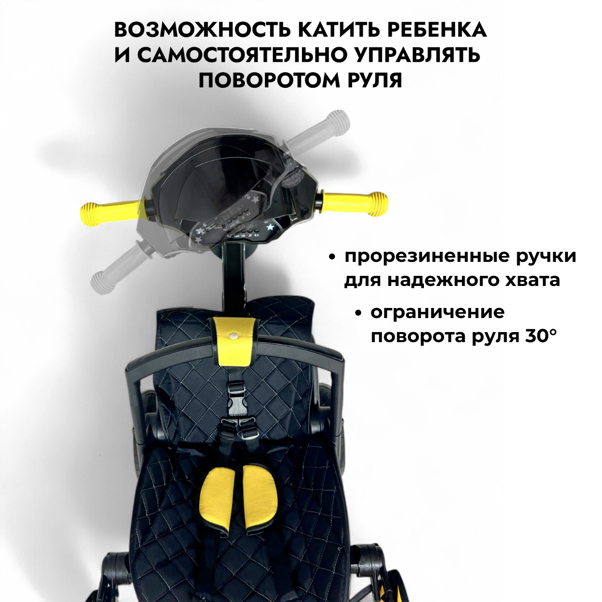 • Диаметр передних колес 9.8" (25 см)