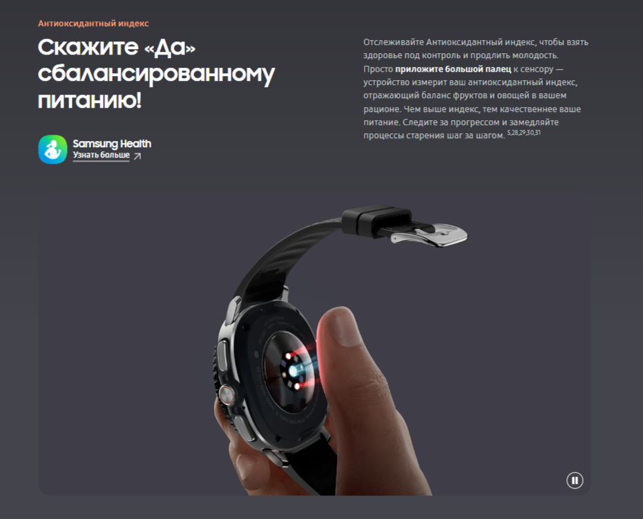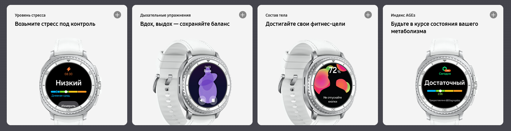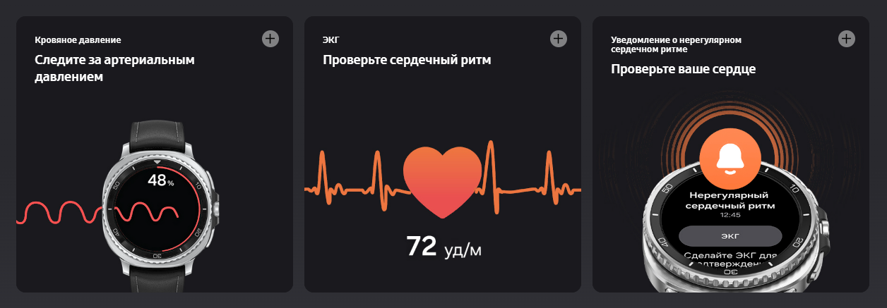 • Датчики магнитометр (компас), акселерометр, гироскоп, датчик освещенности, барометр, шагомер, пульсометр, датчик сердечного ритма, датчик уровня кислорода в крови , датчик артериального давления