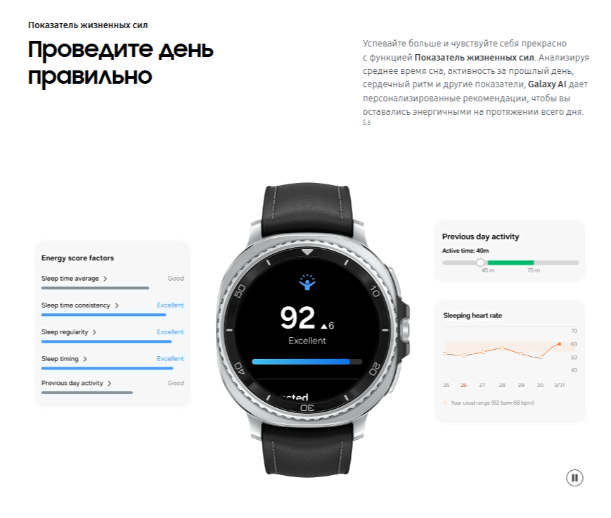 • Здоровье мониторинг сна, мониторинг уровня стресса, женский календарь, мониторинг сердечного ритма (ЭКГ), дыхательные упражнения