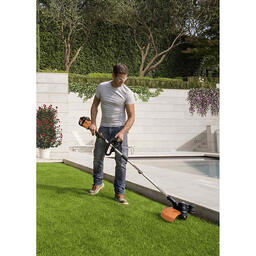 Вес оборудования всего 3,9 кг, что делает его легким и удобным в использовании. Отсек для аккумулятора рассчитан на две батареи, что увеличивает мощность и период автономной работы садового триммера . Световой индикатор контролирует состояние батарей, гарантируя безопасность и удобство использования. Аккумулятор и зарядное устройство не идут в комплекте и приобретаются отдельно.