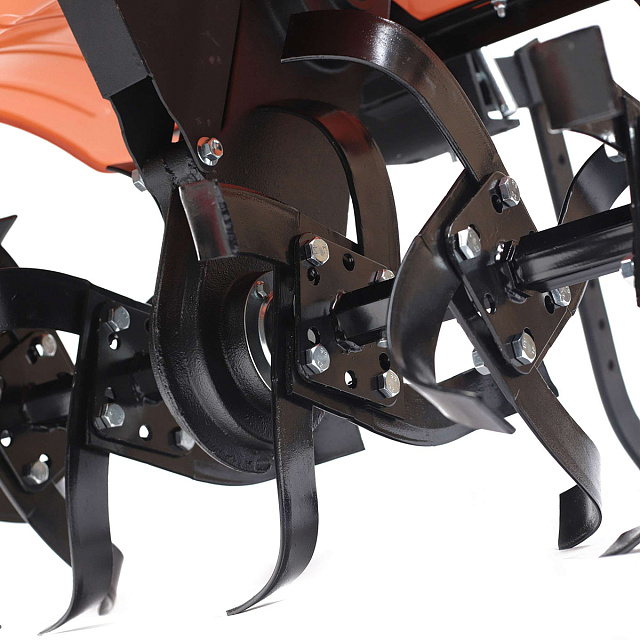 Уникальная особенность модели — наличие пониженной передачи. Она значительно повышает проходимость и упрощает вспашку твердой почвы. Прочные закаленные фрезы эффективно измельчают почву, готовя ее к посадкам.