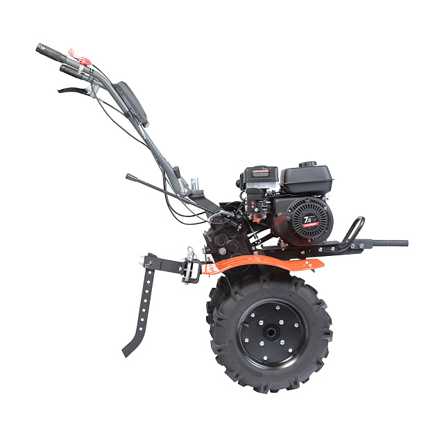 Мотоблок оснащен универсальными креплениями, что позволяет устанавливать дополнительное навесное оборудование, расширяя его функциональные возможности.