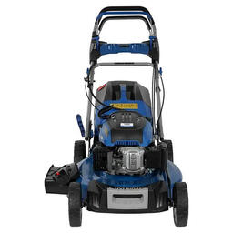 Ключевое отличие газонокосилки от базовой модели - электростартер, работающий от собственного аккумулятора. Такая функция значительно упрощает запуск двигателя - достаточно просто нажать кнопку, - и является актуальной для выполнения работ с частыми переездами и тех ситуаций, когда оборудованием пользуются женщины или пожилые люди.