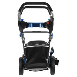 Рукоятка управления снабжена резиновый вставкой для надежного хвата и оснащена панелью с подстаканниками. При работе высоту ручки можно настроить под рост пользователя, а после завершения покоса ее можно сложить для снижения габаритов техники при хранении.