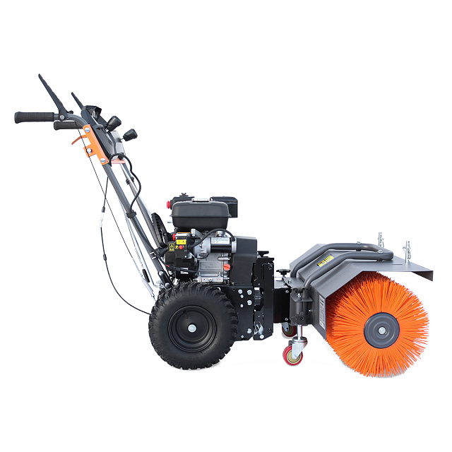 Колеса с агрессивным протектором позволяют технике легко передвигаться по различным поверхностям — от асфальта до рыхлого снега. Это делает машину универсальным инструментом для уборки как в городских условиях, так и на частных участках.