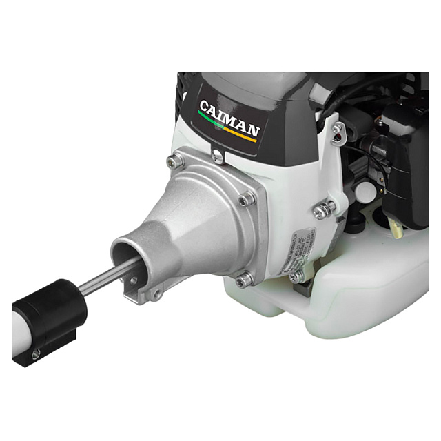 Особое внимание стоит уделить приводному валу мотокосы. Он выполнен из цельного металла и выдерживает большие нагрузки. Вал имеет резьбовое соединение, что обеспечивает лучшую посадку по сравнению со шплинтовым соединением. Это уменьшает пробуксовку и вибрацию. Двойные шарикоподшипники также помогают сократить вибрацию и износ вала. Бронзовые втулки в резиновых амортизаторах поддерживают вал по всей длине, что снижает вибрацию и износ бензокосы Caiman WX21 Shark Gold. Литой алюминиевый корпус муфты сцепления обеспечивает дополнительную прочность и увеличивает срок службы техники.