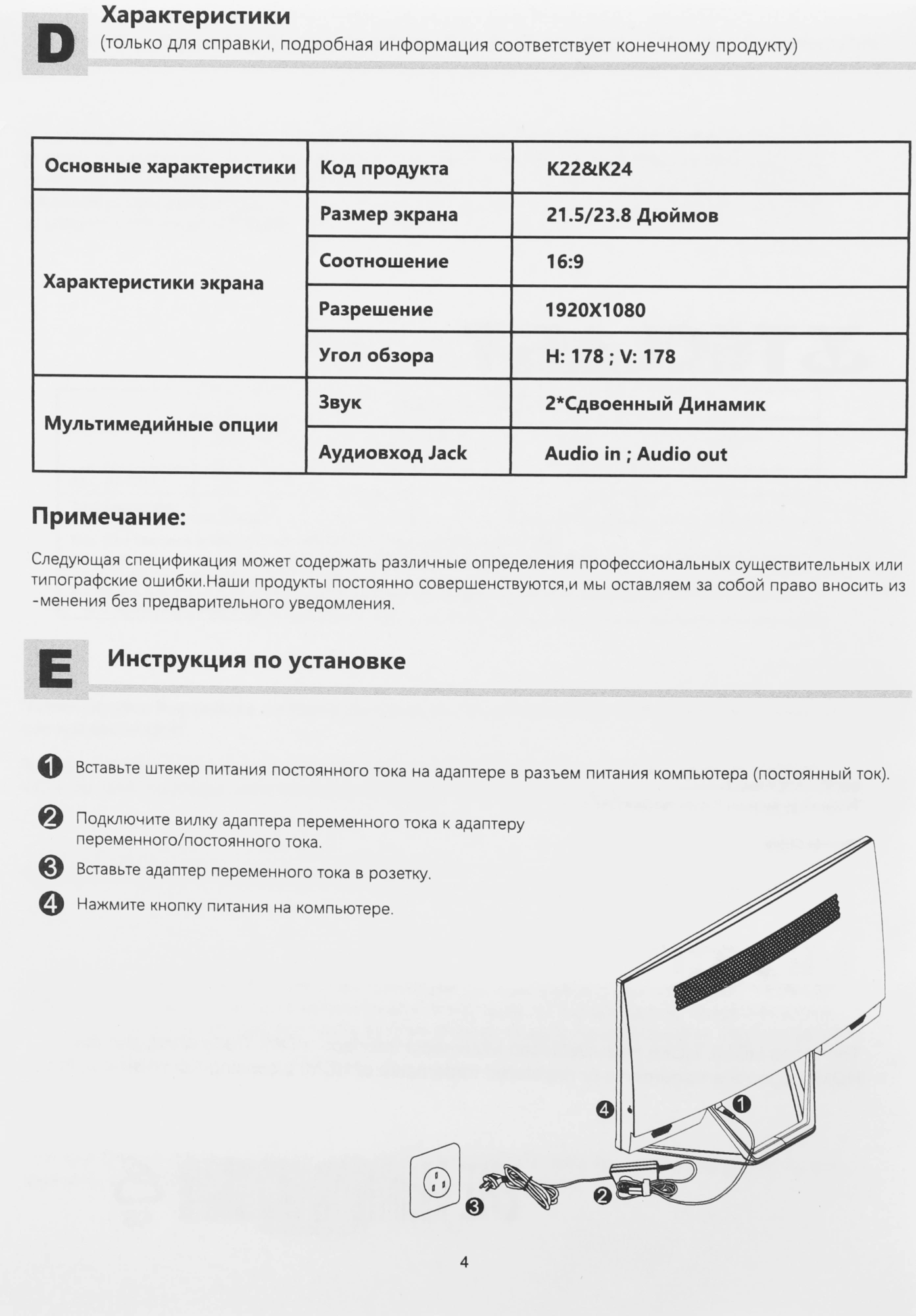 • Комплектация кабель питания, адаптер питания, руководство пользователя