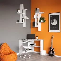 ОсобенностиФункциональный вариант обустройства полноценной рабочей или учебной зоны. Просторная столешница разместит монитор или ноутбук, а также всё то, что необходимо держать под рукой для быстрого доступа. Несколько разноплановых полок станут удобной системой хранения книг, бумаг и прочей канцелярии.