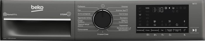 • Все программы рубашки, пух, антиаллергенная, удаление пятен, спорт, джинсы/темное белье, полоскание, слив+отжим, загруженная программа, бережная, ручная/шерсть, экспресс, синтетика, хлопок, хлопок эко