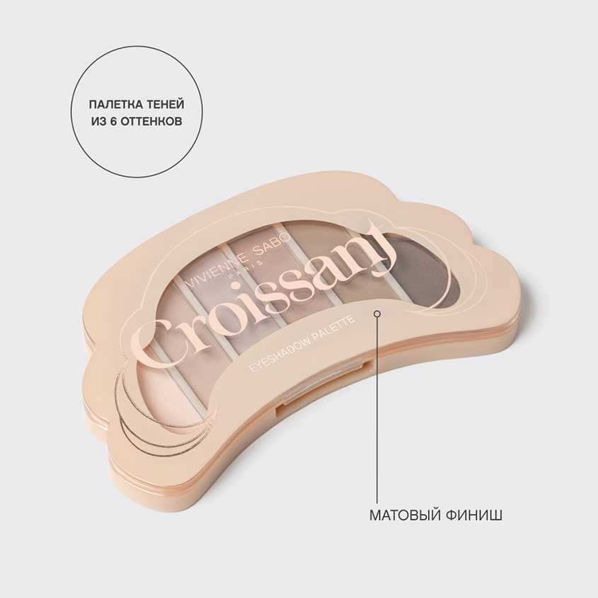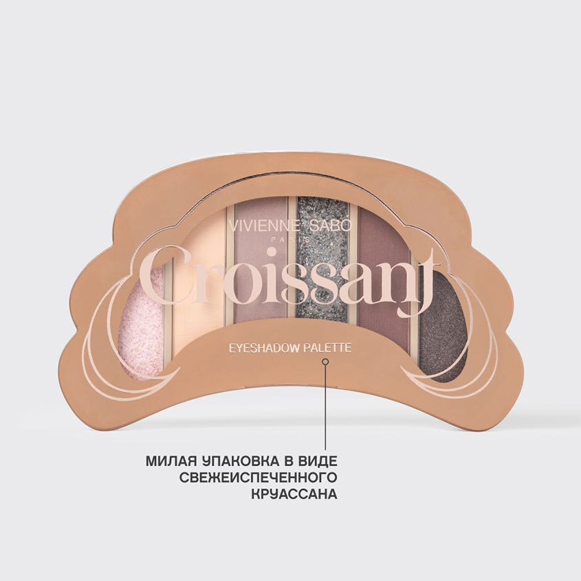 CROISSANT от VIVIENNE SABÓ — палетка теней из шести оттенков с матовым и сияющим финишем. Почувствуй этот аромат свежеиспеченного круассана, атмосферу прогулки по утренним улочкам Парижа и магию французского шарма.