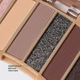 В палитре с классической растяжкой от светлого цвета к темному — шесть тонов с невероятно мягкой текстурой, которые позволят создать как дневной макияж с металлическими переливами, так и вечерний с насыщенными графитовыми акцентами. Каждый оттенок — это новый штрих к твоему образу, который сделает взгляд таким же манящим, как утренний кофе в парижском кафе. Тени легко наслаиваются и растушевываются, а милая упаковка в виде свежеиспеченного круассана никого не оставит равнодушным.