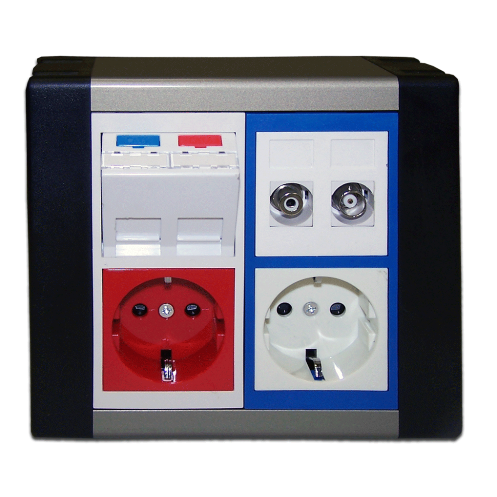Настенный двухрядный блок предназначена для организации полноценных индивидуальных или многопользовательских рабочих мест.Розеточные блоки хорошо справляются с задачей размещения многопользовательских розеток с определенным набором интерфейсов в местах общего пользования, в помещениях, где расположение точек подключения не определено или меняется. Благодаря модульному принципу комплектации блока, можно создавать различные сценарии комбинирования силовых, телекоммуникационных, мультимедийных розеток.Бокс имеет 4 посадочных места под французский стандарт Mosaic 45x45 в лицевых панелях (по 2 места в каждой панели). Бокс в базовой комплектации имеет две лицевых панели белого цвета для горизонтально ориентированных модулей. При необходимости панели адаптеров могут меняться на платы других цветов (красные или синие), а также на панели с вертикальной ориентацией устанавливаемых механизмов.Корпус выполнен из алюминиевого сплава. Снаружи имеет анодированное покрытие.Внутри корпуса установлена съемная алюминиевая перегородка.С боковых сторон корпус закрыт пластиковыми крышками, в которых имеются отверстия для ввода кабеля. Отверстия закрыты съемными заглушками. Установка бокса осуществляется на имеющиеся в комплекте 4 опорных площадки на пазы которых одевается алюминиевый корпус.В комплекте также имеются дюбеля, саморезы, а также два проводника заземления с крепежом.Поставляется в индивидуальной коробке.Материал корпуса и перегородки – алюминий.Остальные элементы – ПВХ.Окраска корпуса – анодирование.
